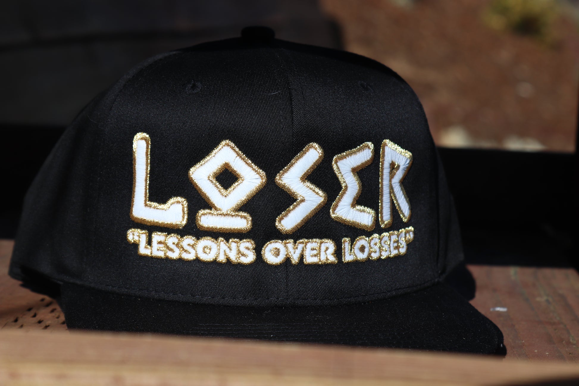 Our signature “Lessons Over Losses” SnapBack. This hat isn’t just a hat, it’s a statement that shows to the world that you decided to learn from your mistakes and continue to grow into the best versions of yourself.